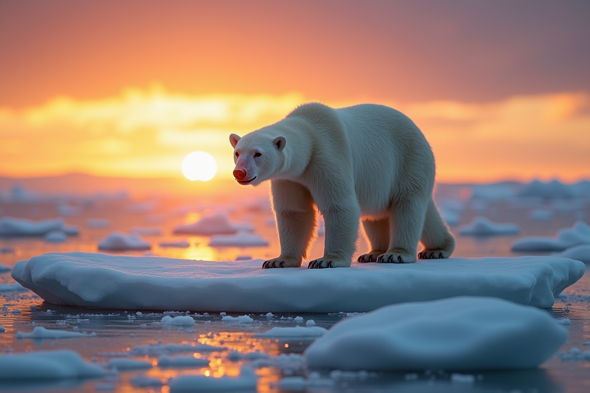 Les ours polaires, par exemple, voient leur habitat fondre avec la disparition des glaces de mer, essentielles pour la chasse aux phoques. De même, le manchot empereur se trouve menacé par le recul des glaces en Antarctique, indispensables pour sa reproduction et son alimentation.