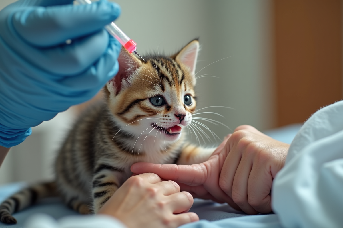 La quantité de lait à administrer dépend de l’âge et du poids du chaton. À trois jours, un chaton consomme environ 2 à 4 ml de lait par repas. Cette quantité doit être augmentée progressivement au fur et à mesure de sa croissance. Utilisez une seringue ou un biberon gradué pour mesurer précisément la quantité de lait.
